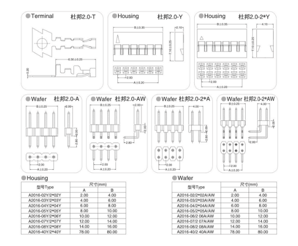产品编号 FWX2.0mm 杜邦2.0条形连接器