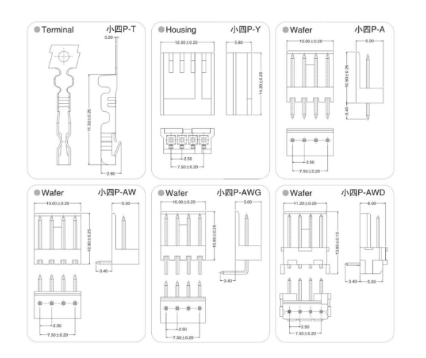 2.5mm 小四P条形连接器